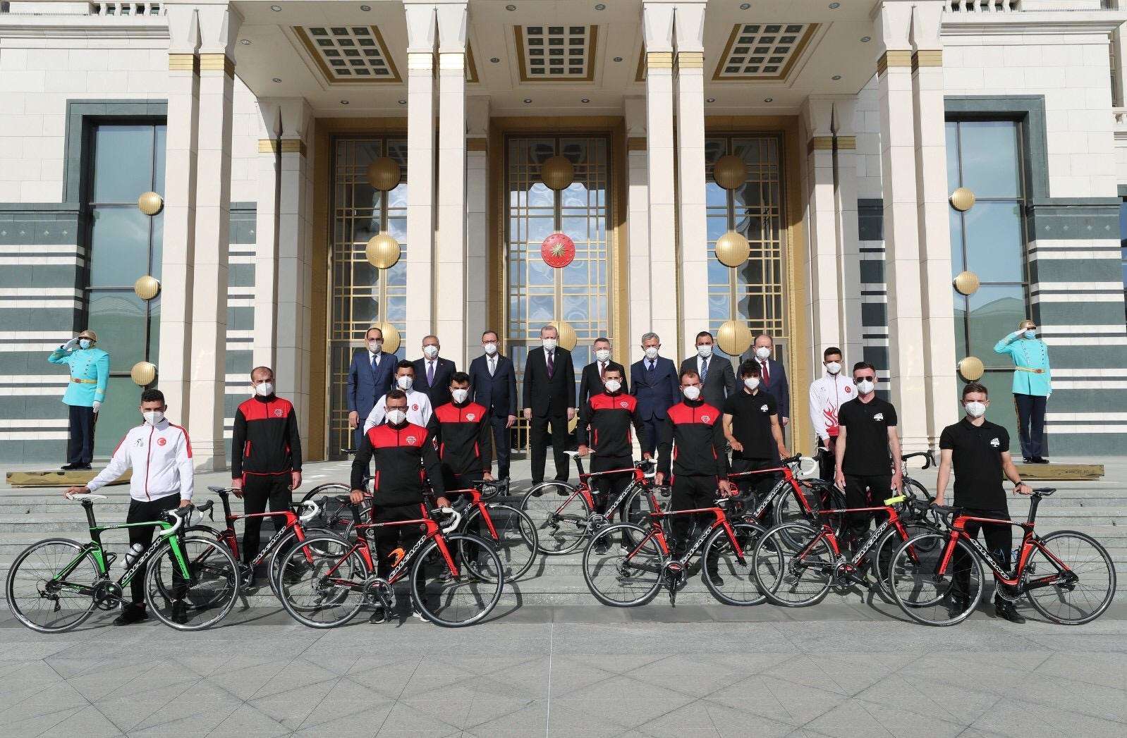 Cumhurbaşkanlığı Külliyesi’nde gerçekleştirilen buluşmada Gençlik ve Spor Bakanı Mehmet Muharrem Kasapoğlu ve Türkiye Bisiklet Federasyonu Başkanı Erol Küçükbakırcı da hazır bulundu. Buluşmaya Salcano Sakarya Büyükşehir Bisiklet takımı adına katılan sporcular Onur Balkan, Mustafa Sayar ve Burak Abay ise Cumhurbaşkanı Erdoğan’ın başarı dilekleri üzerine ülkemizi en iyi şekilde temsil edeceklerinin sözünü verdiler.