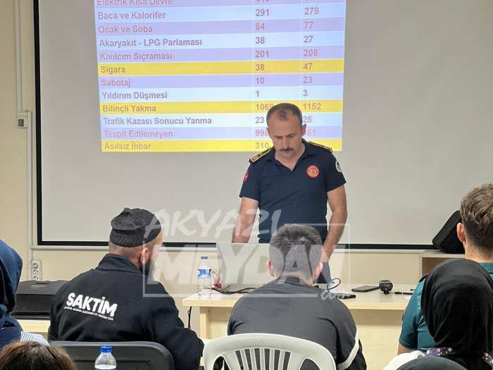 Akyazı itfaiyesince düzenlen yangın bilinçlendirme eğitimine SAKTİM ‘den 30 üye katılım sağladı. Kurulduğu günden bugüne çalışmalarında takdir toplayan örnek kuruluş haline gelen SAKTİM gücüne güç katmaya devam ediyor. Sakarya Arama Kurtarma Yangın Timi (SAKTİM) Akyazı itfaiyesinde düzenlenen iki günlük eğitim uygulamayla sona erdi.