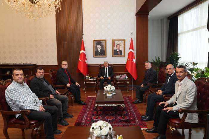 Sakarya Gazeteciler Cemiyeti Başkanı Sezai Matur ve yönetim kurulu üyeleri Vali Rahmi Doğan’a