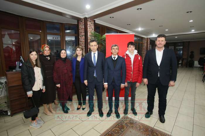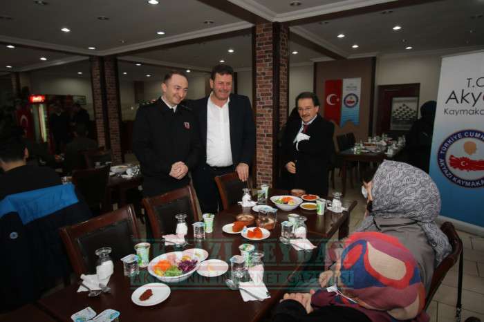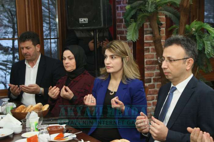 Akyazı Kaymakamı Yakup Güney’in ev sahipliğinde gerçekleştirilen yemek organizasyonuna Akyazı Belediye Başkanı Bilal Soykan, İlçe Emniyet Müdürü Hasan Fehmi Talay, İlçe Jandarma Komutanı Semih Gümüşbaş, Akyazı Müftüsü Kamil Özcan Demir ve şehit yakınları katıldı. Kaymakam Yakup Güney ile birlikte masaları tek tek dolaşarak şehit ailelerine ‘Hoş geldiniz’ diyen Belediye Başkanı Bilal Soykan, onlarla uzun süre sohbet etti. Yemeğin ardından İlçe Müftüsü Kamil Özcan Demir tüm şehitler için dua ettirdi.