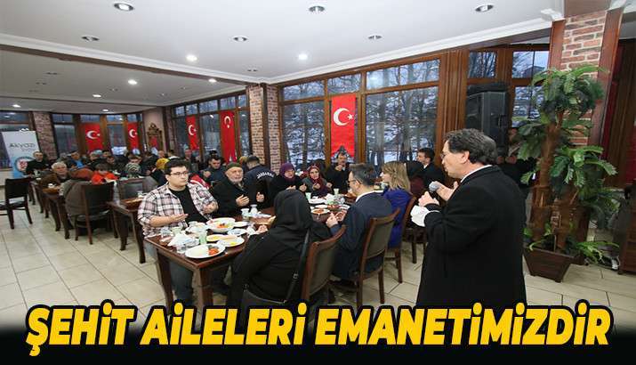Akyazı Kaymakamlığı tarafından şehit aileleri onuruna düzenlenen yemek organizasyonuna katılan Akyazı Belediye Başkanı Bilal Soykan, “Vatanı uğruna şehit düşen evlatlarımızın aileleri emanetimizdir” dedi.