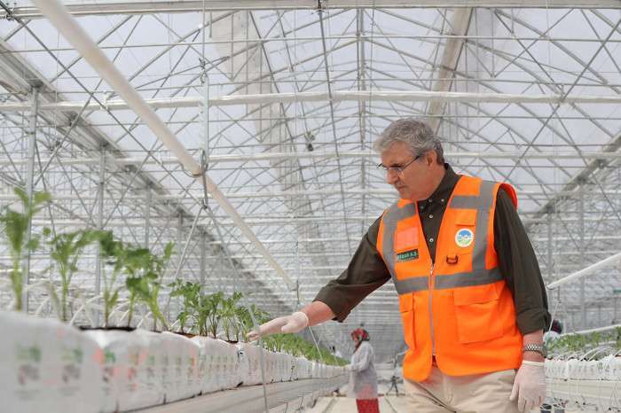 Büyükşehir Belediye Başkanı Ekrem Yüce, Akyazı Kuzuluk’ta inşa çalışmaları sona yaklaşan Seracılık Mükemmeliyet Merkezi’nde fide dikimini gerçekleştirdi. Topraksız ve jeotermal ısıtmalı tarım üretimi konusunda model olacak projede ilk dikimlerin yapıldığını ifade eden Yüce, yaklaşık 65 bin domates fidesinin dikiminin yapılacağını söyledi. Yüce, 25 dönümde 1250 ton domates üretimi yapacaklarını da vurguladı.