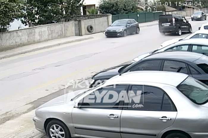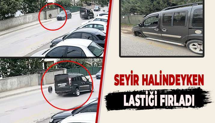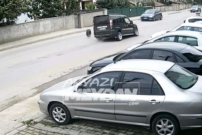 Akyazı'da seyir halindeki hafif ticari aracın ön lastiği yerinden çıkarak karşı yönden gelen otomobile çarptı. Çarpmanın etkisiyle lastik adeta mermi gibi fırladı. O anlar güvenlik kamerasına yansıdı.