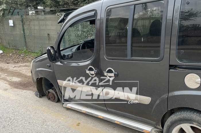 Akyazı Hastane Mahallesi Küçücek caddesi üzerinde seyir halindeki hafif ticari aracın ön lastiği yerinden çıkarak karşı yönden gelen otomobile çarptı.