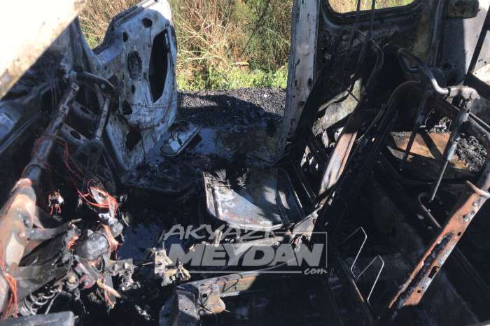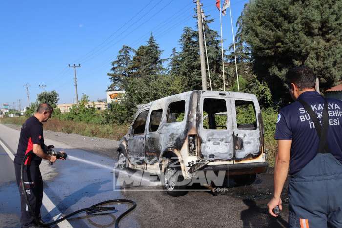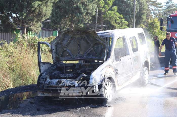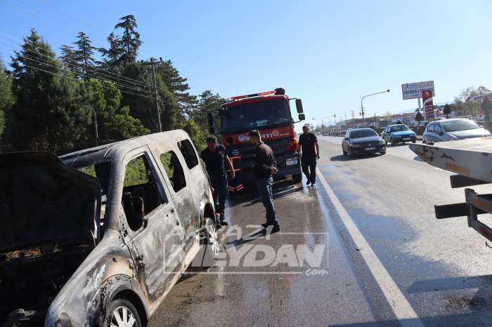 D100 karayolunda seyreden hafif ticari araç bir anda alevlere teslim oldu.