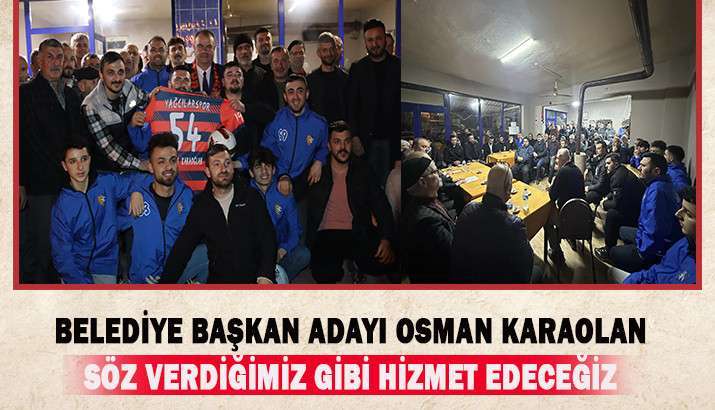 Spor okulları kurup gençlerimizi boş vakitlerinde kötü alışkanlıklardan uzak tutmak için mücadele edeceğiz, Karaoğlan; İlçemizin sorunlarını biliyoruz başkan ve yardımcılarım meclis üyelerim her zaman aktif olacak mesai gözetmeksizin hizmette olacağız önceden olduğu gibi şimdide Akyazı için çalışacağız dedi.