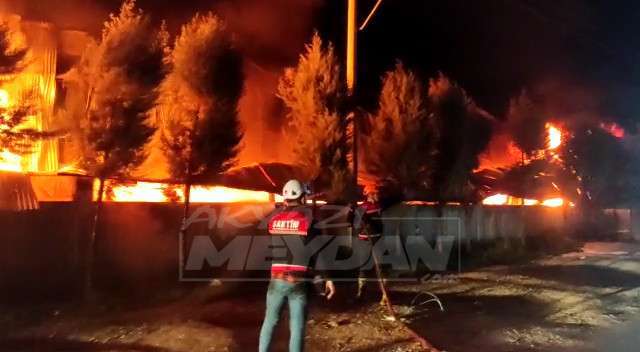 Erenlerde sünger fabrikası alevlere teslim oldu. Alevler kilometrelerce uzaktan göründü.