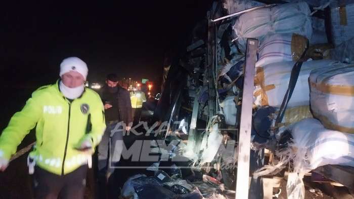 Kazada F.U. isimli TIR sürücüsü yaralandı. Kazaya ihbar üzerine İtfaiye, Polis, Sağlık ve Karayolları ekipleri sevk edildi. SAKTİM ekiplerinin de destek verdiği kurtarma çalışmalarında TIR sürücüsü sıkıştığı yerden kurtarılarak sağlık ekiplerine teslim edildi.