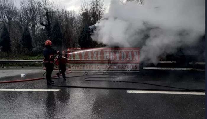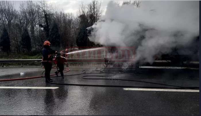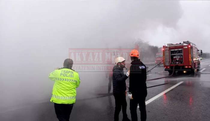 Anadolu Otoyolunun Akyazı-Hendek arasında sabah saatlerinde Kadir M'nin kullandığı 38 ADU * plakalı ikinci el araçları taşıyan tırda bilinmeyen bir nedenle yangın çıktı. Yangını fark eden sürücü, çekiciyi emniyet şeridine çekerek itfaiyeden yardım istedi. Alevler kısa sürede büyüyerek tırı ve taşıdığı araçları sardı.