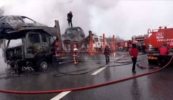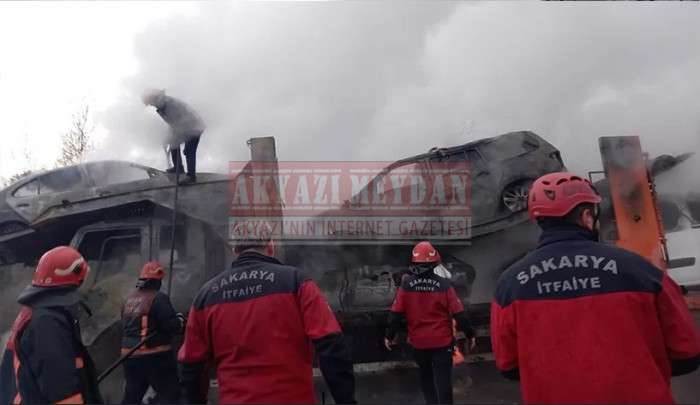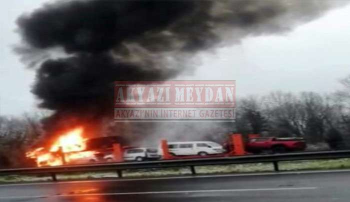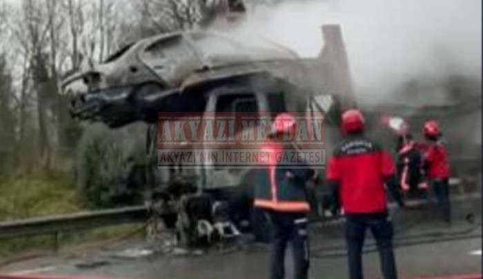 TEM Otoyolu'nun Akyazı-Hendek kesiminde ikinci el araçları taşıyan tırda yangın çıktı. Yangında tır ve taşıdığı 6 araç küle döndü.