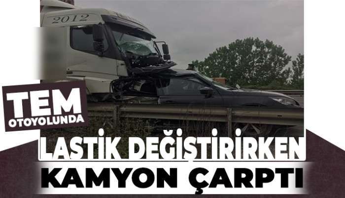 TEM'de emniyet şeridinde lastik değişen araca kamyon çarptı