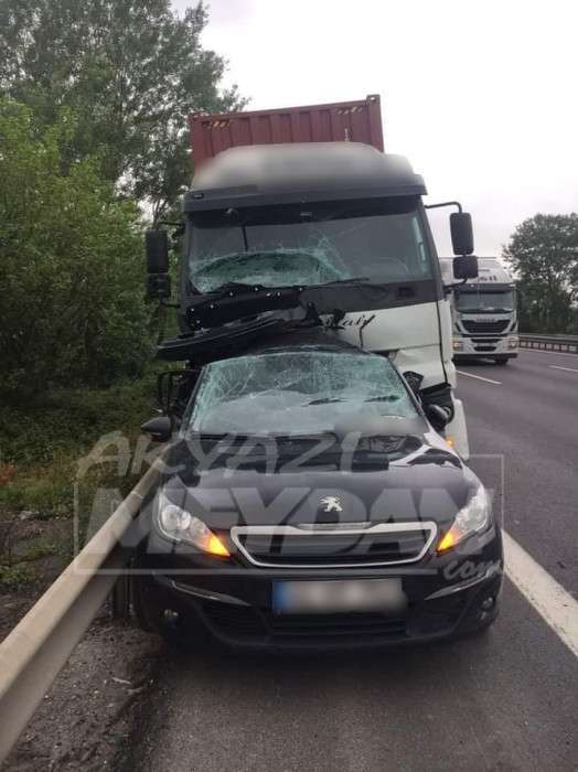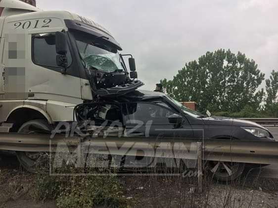 Otomobile Ankara istikametine giden kamyon çarptı kazada yaralanan olmadı. İddiaya Göre Ankara İstikametine giden Akyazı gişelerine gelmeden lastiğinde arıza oluşan sürücüsünün ismi öğrenilemeyen 41 HT *** Plakalı otomobilini emniyet şeridine çekerek lastik değişimi yaparken.
