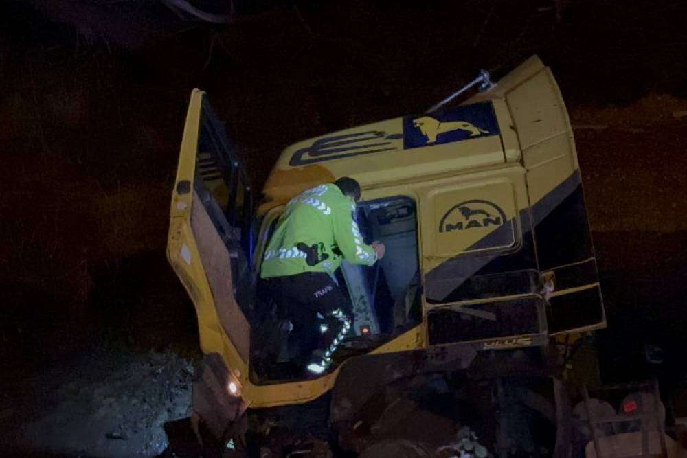 Tır şarampole devrildi: 1 yaralı