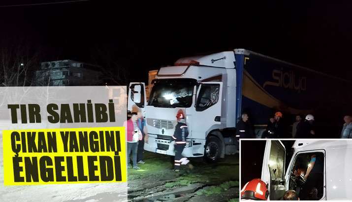 Taşburun mahallesinde çıkan TIR yangınına sahibinin müdahalesi engel oldu.