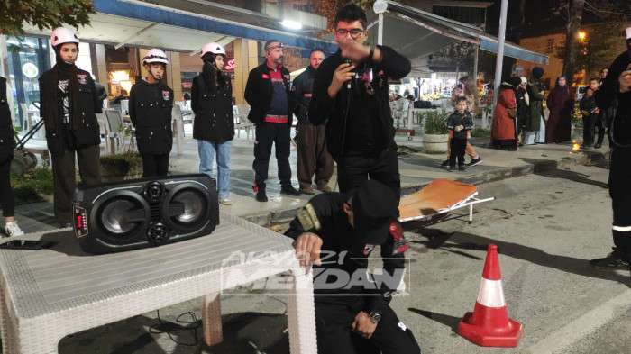 Akyazı'da Saktim üyeleri, Ada Caddesi'nde tatbikata katıldı. Türkiye genelinde ilk kez uygulanacak "çök-kapan-tutun" tatbikatı saat 18.57 itibariyle gerçekleştirildi.