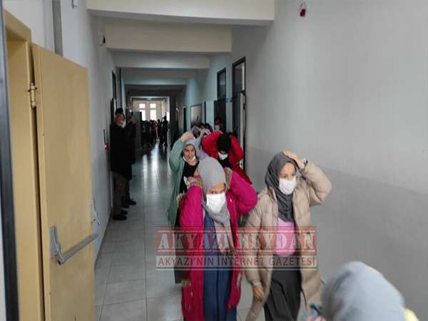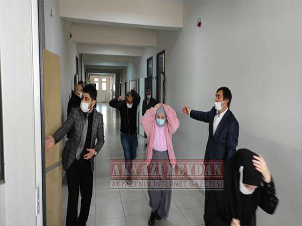 Akyazı İlçe Kaymakamı Yakup Güney ve İlçe milli eğitim müdürü Recep Özdemir Akyazı Kız Anadolu imam hatip lisesinde tatbikata katıldı.