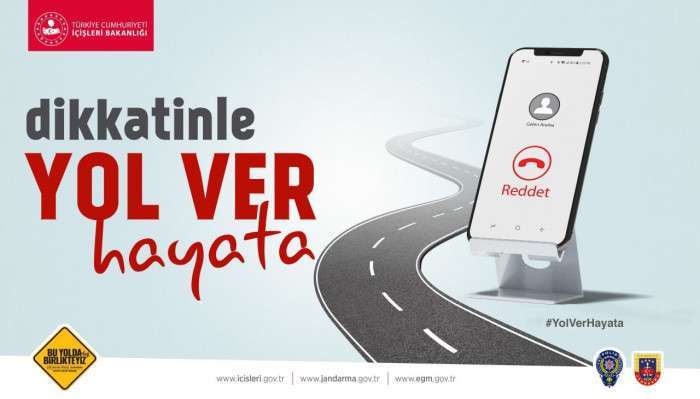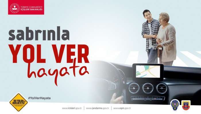 Bakanlığımızca ülke genelinde yol ver hayata sloganıyla yeni bir kampanya başlatıldı. Kampanya kapsamında hazırlanan “kemerinle yol ver hayata”, “sabrınla yol ver hayata”, “kaskınla yol ver hayata”, “dikkatinle yol ver hayata” yazılı görseller ile farkındalık oluşturulacak.