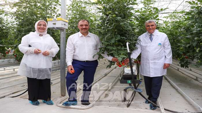Seracılık Mükemmeliyet Merkezi projesinin kendi alanında Türkiye’de bir ilk olduğunu ifade eden Başkan Yüce, “Tesis sayesinde tarım potansiyelimizi ve doğal kaynaklarımızı etkin bir biçimde kullanıyoruz. Proje için öncelikle 27 dekarlık bir alanda örnek bir sera inşa ettik. Seramızda ilk olarak domates çeşitleri üretimine başladık. Hasat zamanı geldi. İlk ürünlerimizi kısa süre içerisinde alacağız. 2 dekarlık alanda da paketleme ve otomasyon sistemleri kurduk. Tam otomasyonlu üretim sistemine sahip olan seramızda; ısıtma, havalandırma, sisleme, sulama ve gübreleme otomasyon sistemi ile yapılmakta teknolojinin tüm imkanları ile üretim kontrol edilmektedir. Sera içerisindeki tozlaşmayı bambus arılarıyla yapıyor ve böylece biyoçeşitliliği sağlamış oluyoruz” ifadelerini kullandı.
