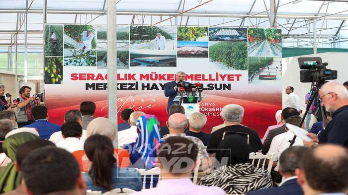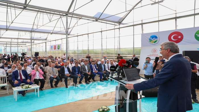 Sakarya’nın tarımsal üretimde Türkiye’ye örnek projesi Seracılık Mükemmeliyet Merkezi’nin tanıtımında konuşan Başkan Ekrem Yüce, “Üretim odaklı anlayışımız ile yeni bir projeyi hayata geçirmenin mutluluğunu yaşıyoruz. Tam otomasyona sahip olan seramızda; ısıtma, havalandırma, sisleme, sulama ve gübreleme gibi işlemleri teknolojinin tüm imkânları ile gerçekleştiriyoruz. Yıl boyunca merkezde 1250 ton üretim yapmayı hedefliyoruz” dedi. Milletvekili Atabek, tarımda model bir çalışmanın hayata geçirildiğini ifade etti. Vali Kaldırım ise ülke tarımına gurur duyulacak bir eser kazandırıldığını vurguladı.