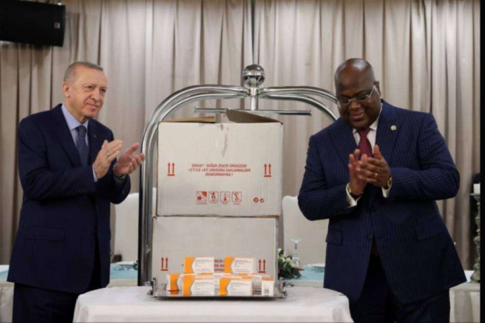 Kinşasa'da bir otelde gerçekleştirilen temsili törende, aşılar, Cumhurbaşkanı Erdoğan tarafından Kongo Demokratik Cumhuriyeti Cumhurbaşkanı Felix Tshisekedi'ye teslim edildi.