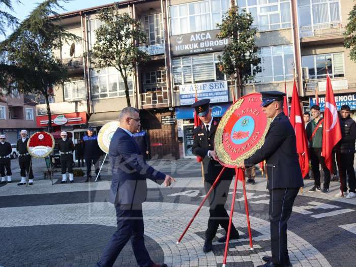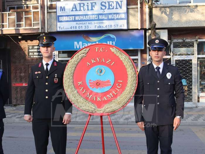 Atatürk anıtının önünde düzenlenen törene Akyazı Kaymakamı Mustafa İkbal Eşki, Akyazı Cumhuriyet Başsavcısı Hüseyin Aşık, Akyazı Belediye Başkanı Bilal Soykan, Garnizon Komutanlığı adına Tank Palet Fabrikası Müdürü Mühendis Albay Mehmet Tahir Kubilay, Akyazı ilçe jandarma komutanı Sinan Gönaylı, Akyazı Askerlik şube başkanı Mithat Deniz, Akyazı ilçe milli eğitim müdürü Hasan Can, Akyazı Muhtarlar Dernek başkanı Ahmet Savaş, İlçe siyasi parti temsilcileri, Gaziler, öğretmen ve öğrencilerin yanı sıra vatandaşların katıldı.