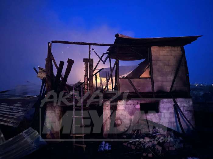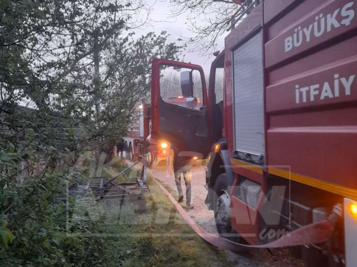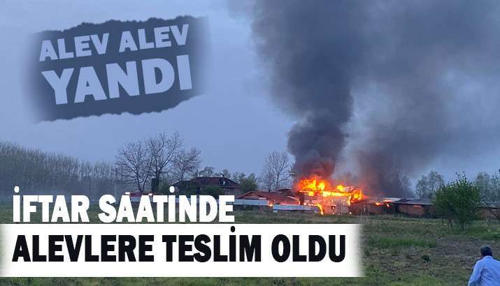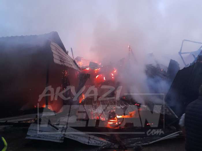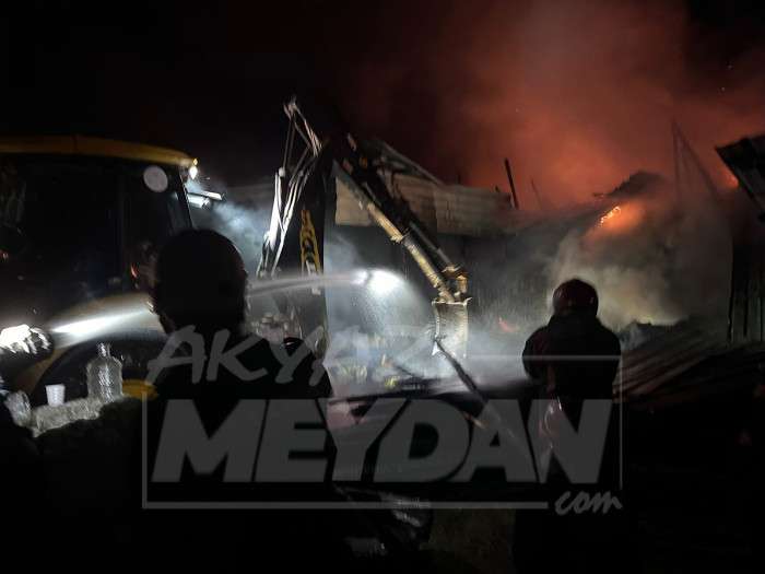 Akyazı’da iftar saatinde alevlerin sardığı ahır ve samanlık küle döndü.
