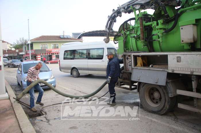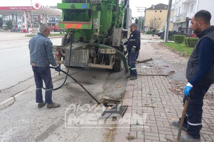 Akyazı Belediyesi ve SASKİ ekipleri ortak yürüttükleri çalışma ile ilçe merkezindeki yağmur suyu kanallarını temizleme çalışması başlattı.