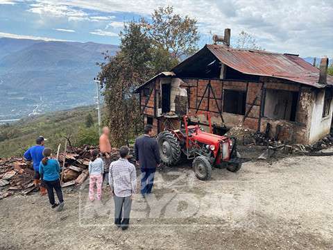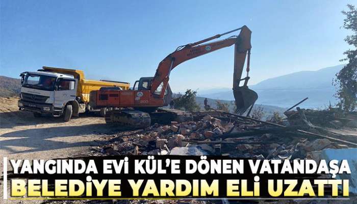 YANGINA EVİ KÜLE DÖNMÜŞTÜ MAĞDUR KALAN VATANDAŞA BELEDİYE YARDIM ETTİ