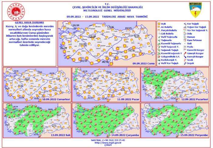 Kuzey, iç ve doğu kesimlerde mevsim normalleri altında seyreden hava sıcaklıklarının bugünden itibaren batı kesimlerde başlayarak artacağı, hafta sonu mevsim normalleri üzerinde seyredeceği tahmin ediliyor.