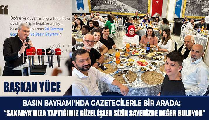 Sakarya Büyükşehir Belediye Başkanı Ekrem Yüce, 24 Temmuz Gazeteciler ve Basın Bayramı dolayısıyla şehirdeki basın emekçileri, temsilciler, genel yayın yönetmenleri ve haber müdürleriyle bir araya geldi.