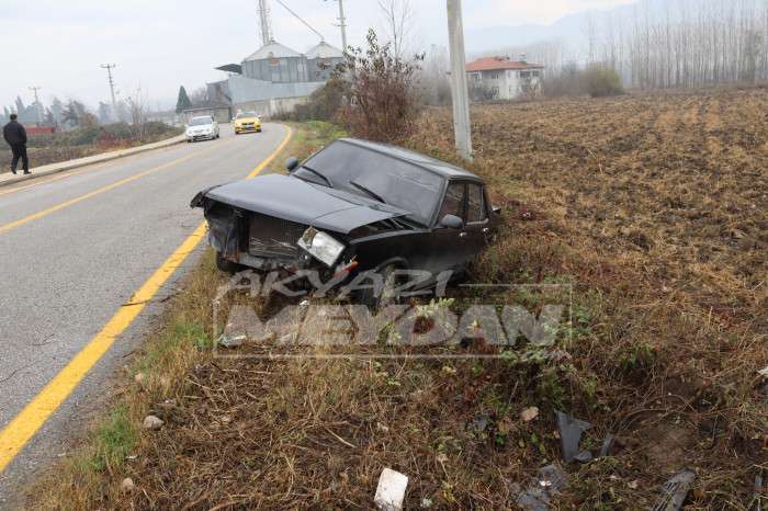 Edinilen bilgilere göre, Yuvalak yolunda meydana gelen kazada mısır kurutma ambarı yakınlarında meydana gelen kazada B.Ö. yönetimindeki 34 DUK *** plakalı otomobil yağışlı havanın etkisiyle kayganlaşan yolda sürücüsünün hâkimiyetini kaybetmesi sonucu kayarak yol kenarsındaki kaldırıma ardından kanala uçtu. Kazada araç içerisinde bululanan Sürücü B.Ö. ile O.Ö. hafif şekilde yaralandı yaralılar 112 sağlık ekiplerince Akyazı Devlet Hastanesine kaldırıldı.
