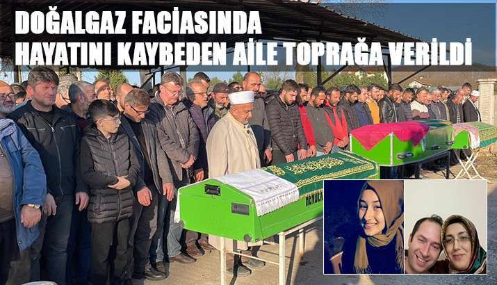 Ömercikler mahallesinde bulunan bir apartmanda kombiden sızan gazdan zehirlenerek hayatını kaybeden Abdurrahim (49), eşi Hacer (43), çocukları Zeynep (19) Adli tıp kurumundaki otopsi işlemlerinin ardından Küçücek Cumhuriyet mahallesi’nde bulunan eve getirildi burada helallik alınıp Hendek sivritepemerkez camii’ne götürüldü. İkindi vakti kılınan namazın ardından anne baba ve kızları yan yana açılan mezarlara defnedildi. Göz yaşlarının sel olduğu cenazeye çok sayıda vatandaş katıldı.